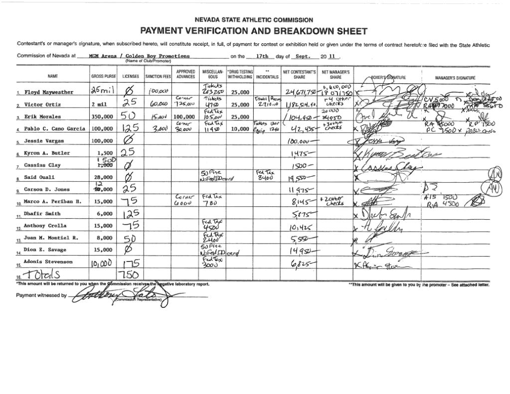 So, what is registered and paid off by the NSAC on fight night now officially represents 'real numbers' and total of a fighter made for a fight? Just want to be sure I understand your position on those 6mil purses reported for Pacquiao.